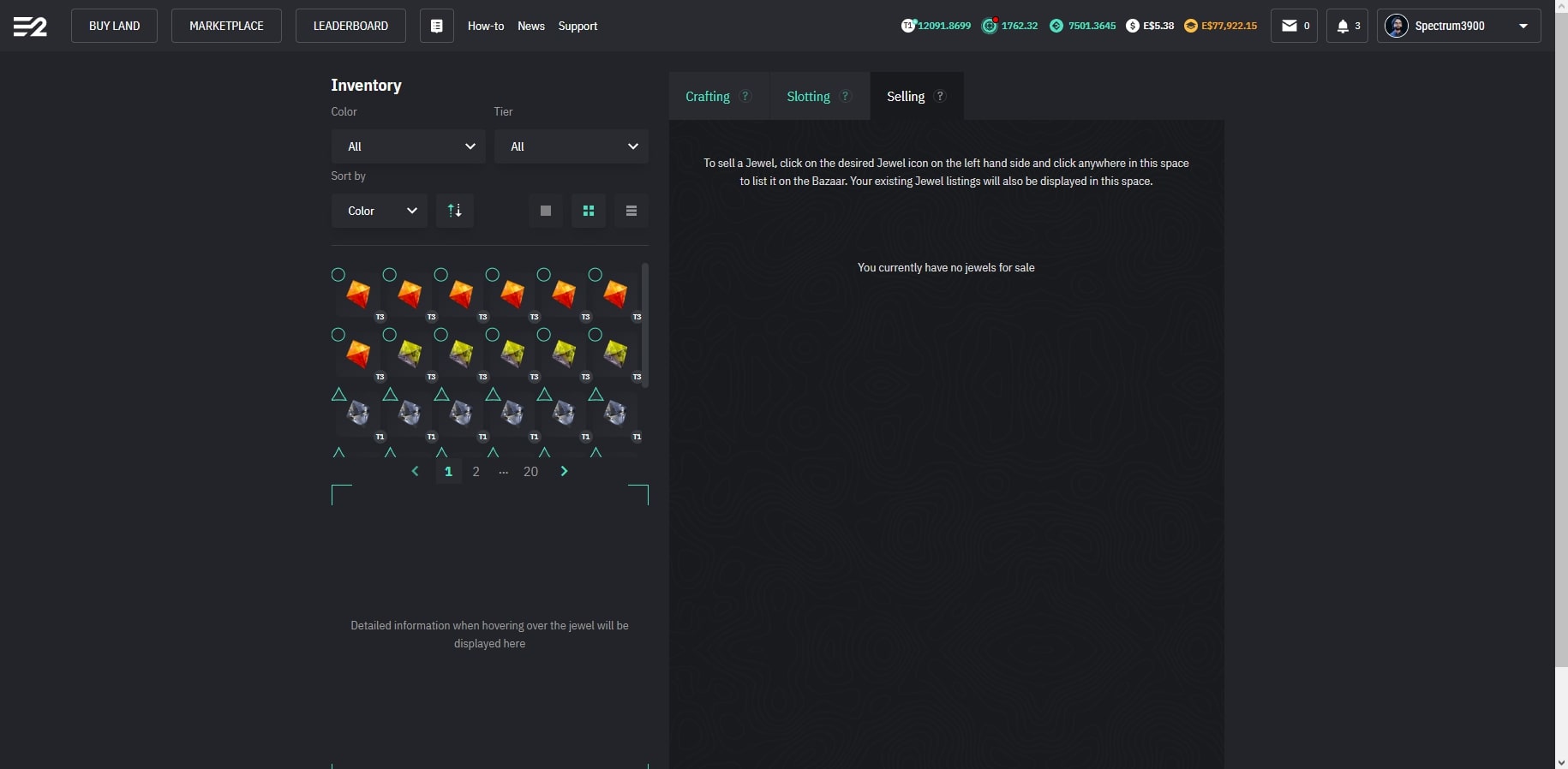 Jewels: When you own land in Earth2 - you will generate Jewels and E-ther which in turn can be converted into Essence. T1 land will get the best return for Jewels and E-Ther as long as you slot the property with Jewels to get 100% detection from Mentars. You can purchase Jewels from the Bazaar. You can also combine three of the kind to create more powerful Jewels and improve them further with shards and Essence.