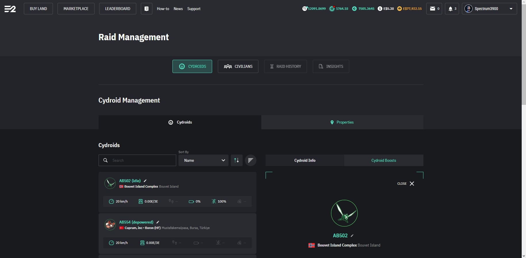 Civilians: Civilians can be added to properties using Eth-er. Those Civilians will help you into raiding automation - like recharging CyDroids, empty each CyDroids upon returns and allow launching raiding to properties you raided in the past. Raiding gather red energy to feed your Civilians weekly. We do know that red energy will be useful for other needs so gathering it can be good in general. Also Civilians can gain experience and be more valuable over time. You can buy them for about E$0.10 each.