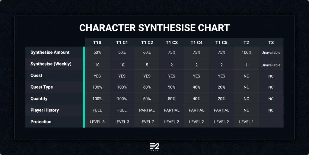 Tier 1S: This type of land can be purchased from e2 marketplace or can be acquired by upgrading from T2 to T1 where each area has allowed 125k tiles (per each energy type) by using Essence, Red Energy and Yellow Energy for upgrading. Those Special T1 have a great advantage over its T1 tile counterpart. We know that T1S will have 50% discount when spawning an avatar, 10 spawning weekly, Quests and Quests type and full history for players and much more. In addition, staking T1S Essence is yielding more E-Ther daily. In all Upgrading land to T1S is a great strategy for your portfolio.