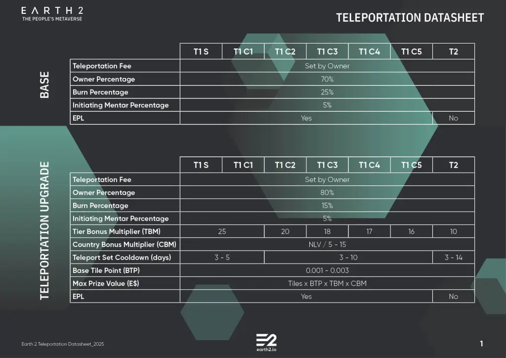 Land Tier Teleportation Datasheet