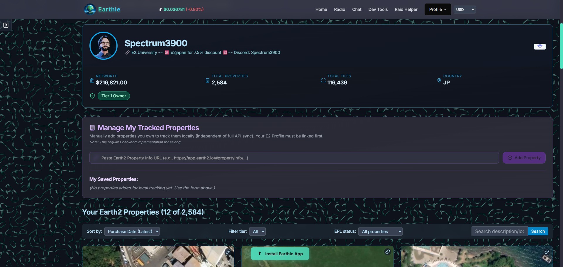To start paste your profile ID - get your profile url and just copy the last section of the full url. (ie: https://app.earth2.io/#profile/85c750d8-93f6-4e71-bc53-1b7a509d7a75)