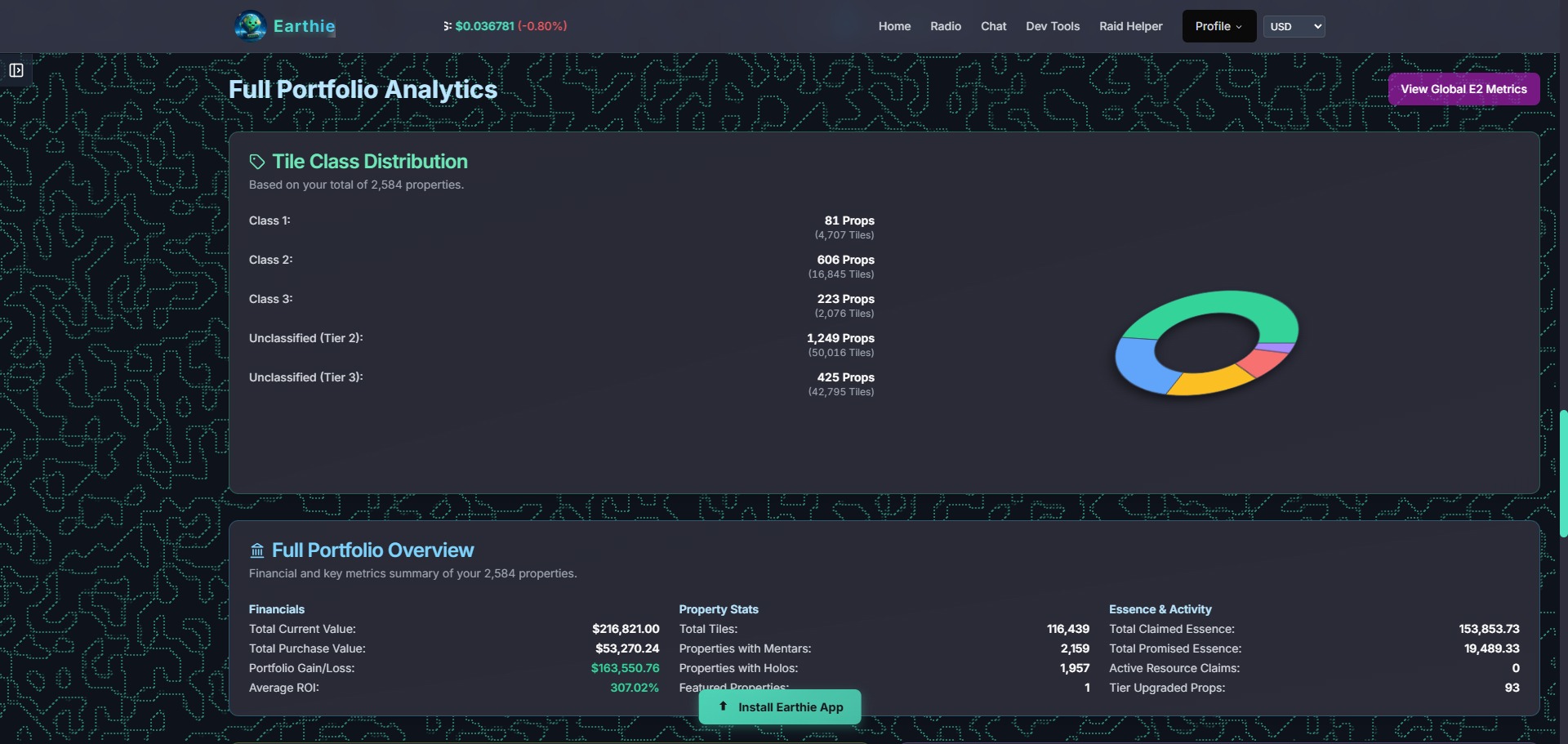 The page will start parsing through your Earth2 data and it will make a nice one page report.
