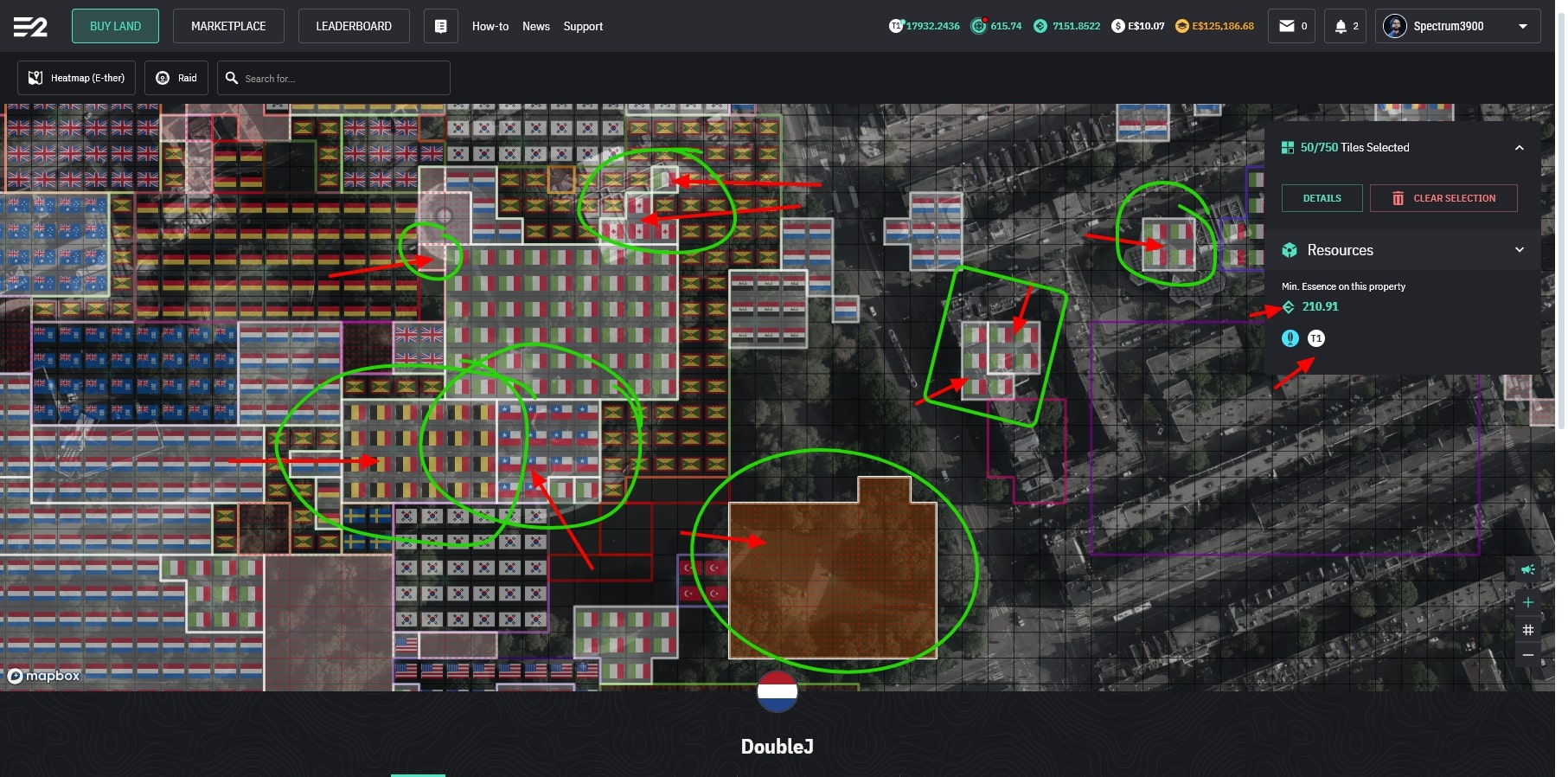 To select properties we need to find T1 or T2 land, with mentars, and with some Minimum Essence. Why does minimum Essence matter; it is because it will tell us that those properties were not drained by a player that must login to claim. We need to acquire a good number of properties where that owner does not login anymore to gather its E-Ther, resources and jewels.