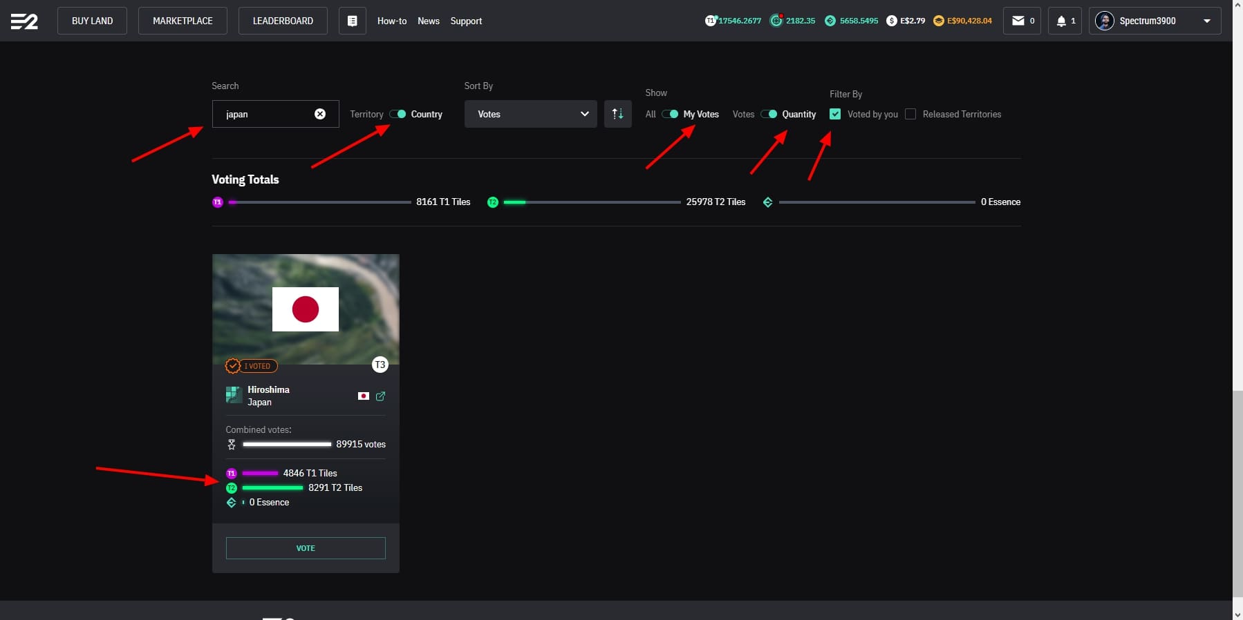 Let's verify how many tiles total we dedicated to that region to be unlocked. Search for "japan"; toggle to "Country"; toggle to show "My Votes"; toggle to Quantity and check Filter by "Voted by you".