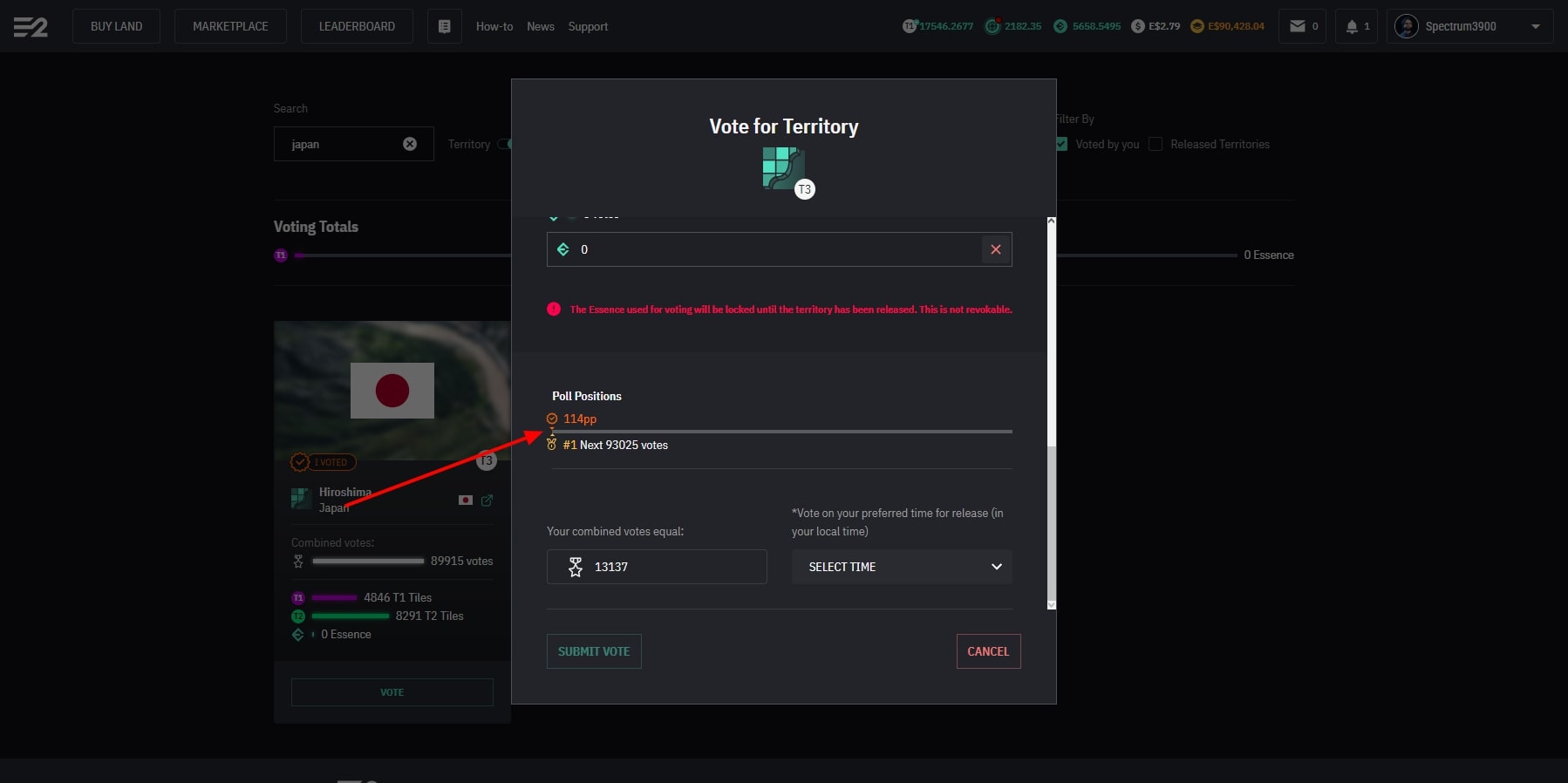 To vote we can use; your T1 tiles in that country which has a bigger influence; your T2 tiles in that country with slightly less influence; and Essence which we do not recommend since that Essence will be locked for a long time until it is unlocked.