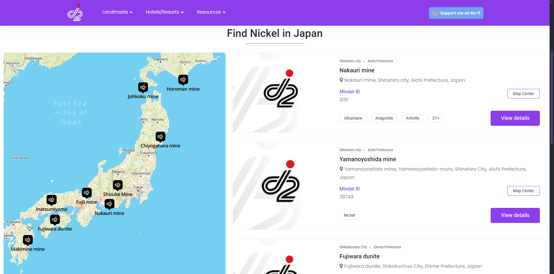 We are going to use E2Japan to find Nickel in Japan which link directly to a Mindat database of actual mines which are accepted by the Earth Team.