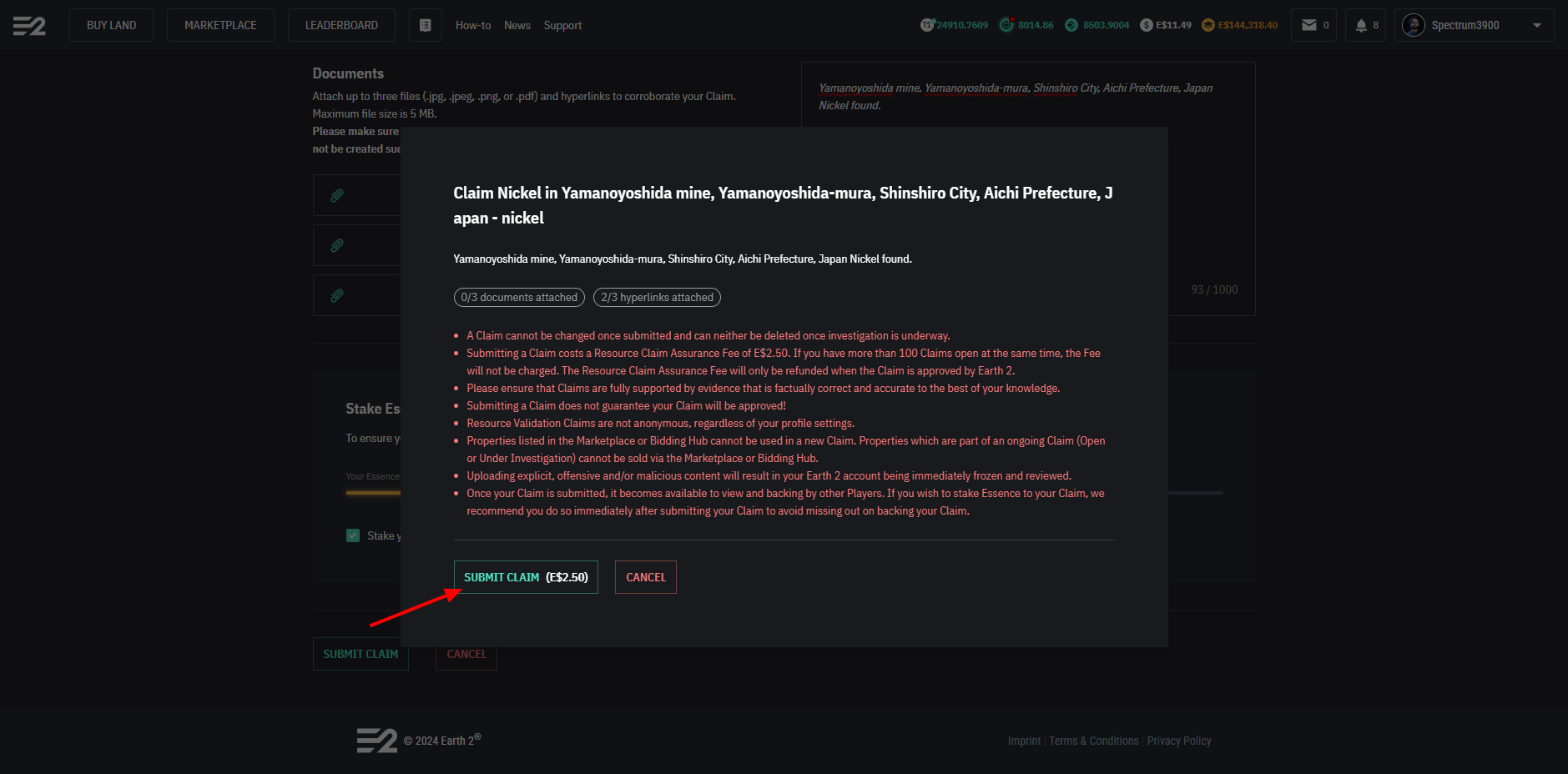 Submit the claim where you have to pay E$2.50 - The funds will be refunded after the claim has been approved.