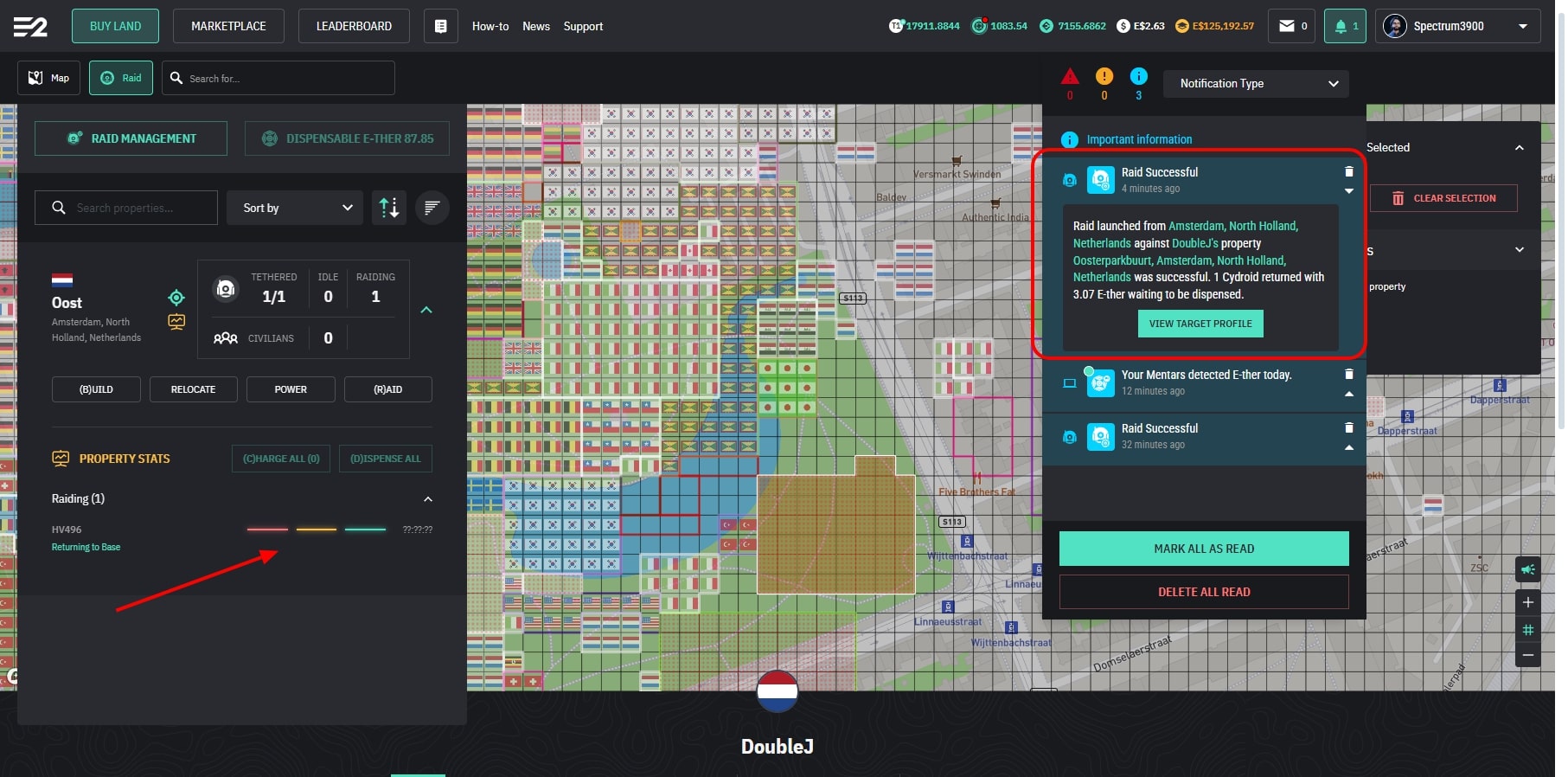 After the CyDroid comes back, you will receive a notification and see how much E-Ther you acquire through the raid. I have setup my notifications to only show "Raid Successful"—look at the Settings to make it the way you prefer.