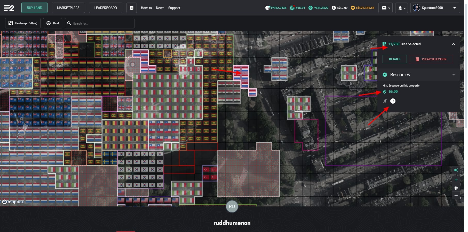 To select properties we need to find T1 or T2 land, with mentars, and with some Minimum Essence. Why does minimum Essence matter; it is because it will tell us that those properties were not drained by a player that must login to claim. We need to acquire a good number of properties where that owner does not login anymore to gather its E-Ther, resources and jewels.
