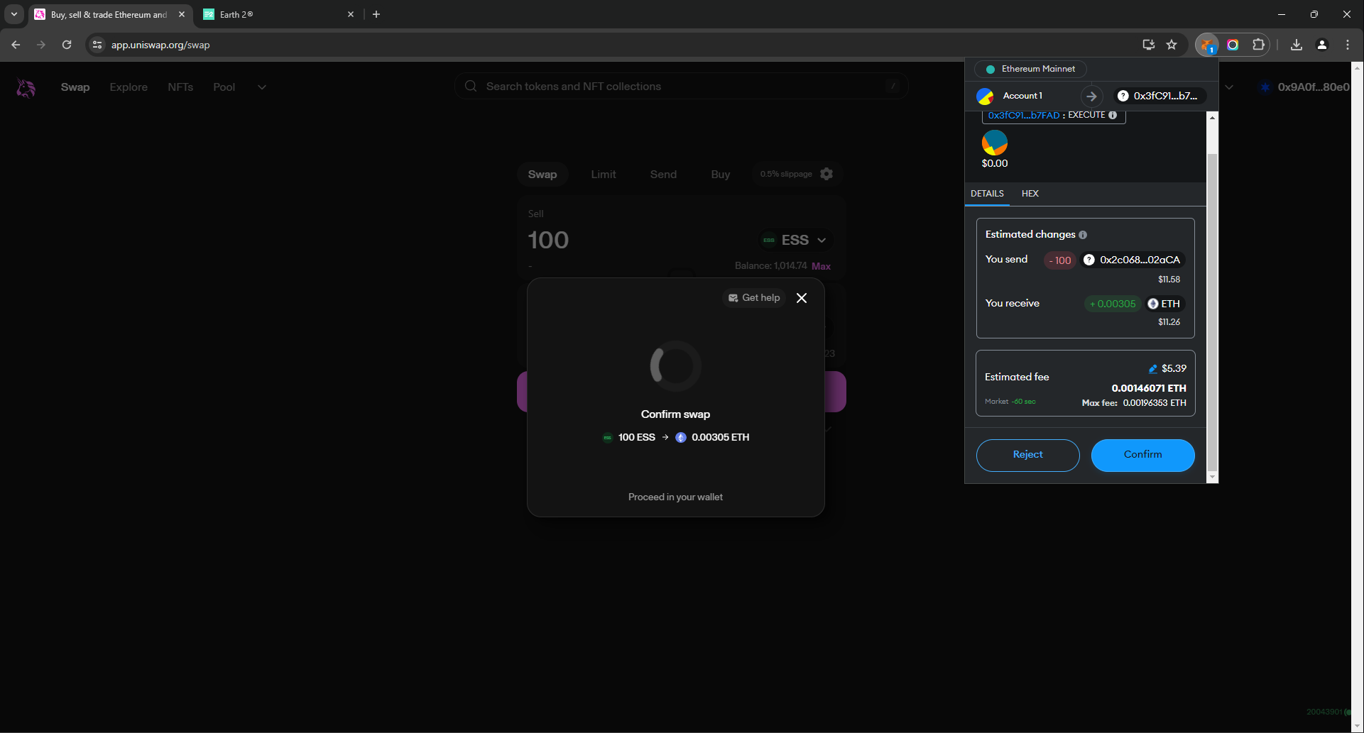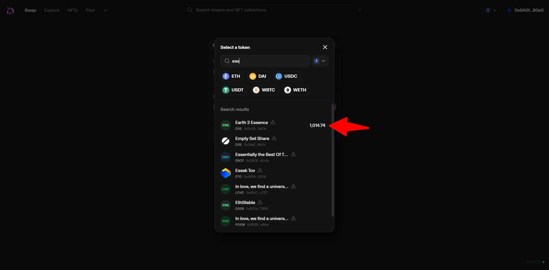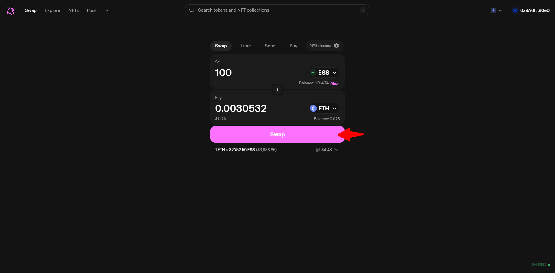 Selling Essence on Uniswap