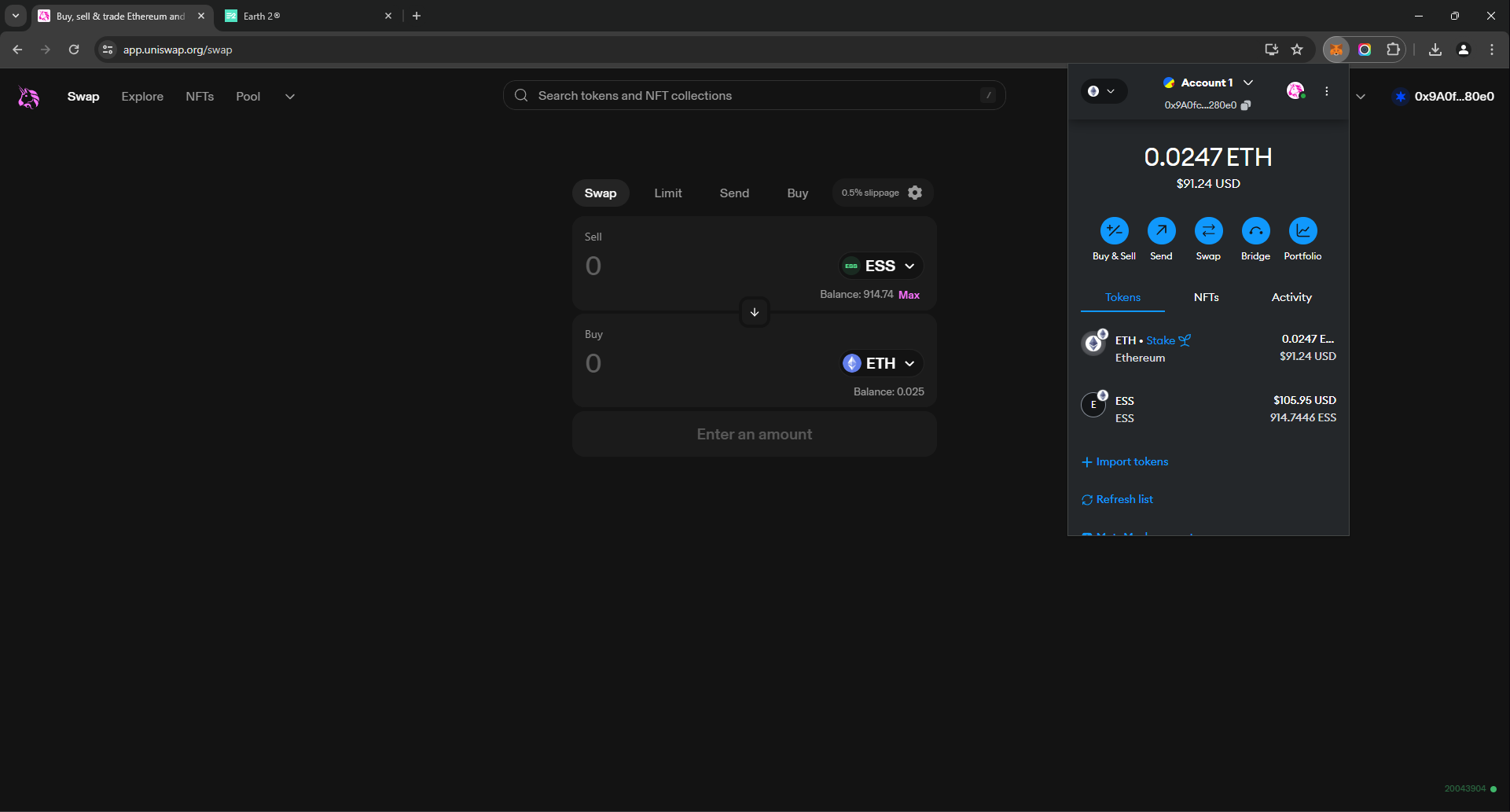Let's sell some Essence ESS on Uniswap app using our Metamask wallet.